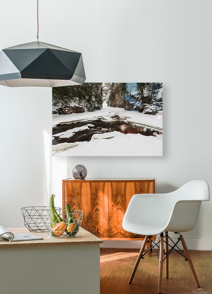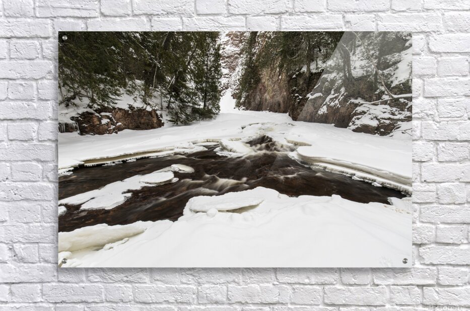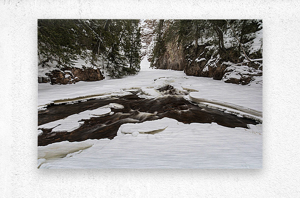 Get this artwork "Winter Canyon on River" in a framed print.